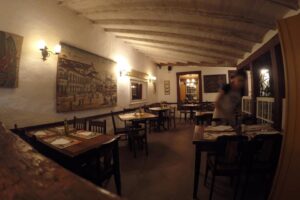 Localizado no centro histórico de Tiradentes, a cerca de 100 metros da Igreja Matriz de Santo Antônio, o Atrás da Matriz é um restaurante que tem como principal marca a sua criatividade – que está presente no seu nome sugestivo, no teto ricamente decorado com rolhas de cortiça, na inventividade da sua cozinha, e no seu cardápio nada convencional.