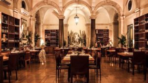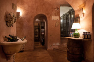 Localizado entre o Pantheon e a Piazza Navona, o restaurante Casa Bleve se encontra no belíssimo interior do Palazzo Lante – um imponente edifício renascentista de quase cinco séculos. O prédio histórico impressiona com o seus grandes salões abobadados e decoração luxuosa, além da adega subterrânea cuja estrutura remonta ao período Augustano.