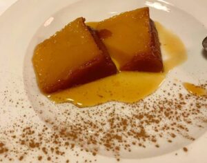 Entre os pedidos, destaco a tábua de queijos e enchidos, o folhado de queijo da serra com mel, o cabrito ao forno e o fabuloso Pudim Abade de Prisco. Uma refeição lusitana legítima. Para acompanhar todas essas delícias, pedi o Douro Quinta da Touriga-Chã 2015. Ótima experiência. Imperdível.