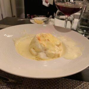 Não à toa, sua cozinha foi mencionada recentemente no guia Michelin. Provei o tartar de salmão, suflê de queijo, e o bacalhau com ragu de milho e pain perdu. Tudo muito saboroso.