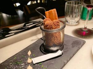 Achei tanto o conceito quanto a decoração do local muito interessantes. Comecei experimentando o couvert e os croquetes com maionese de linguiça, em seguida, pedi um filé de vitela e um cachaço de porco preto – todos deliciosos. Para encerrar, um ótimo sorvete de coco com queijo de cabra. Comida boa, de sabores intensos.