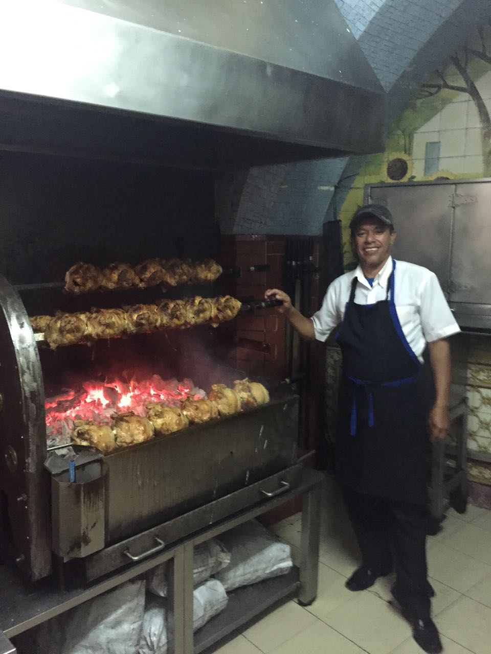 Frango assado na brasa, com um tempero bem especial da casa.