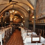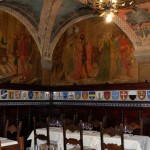 Internamente, o ambiente me lembra uma igreja misturada com um salão de um castelo de filme de capa e espada.