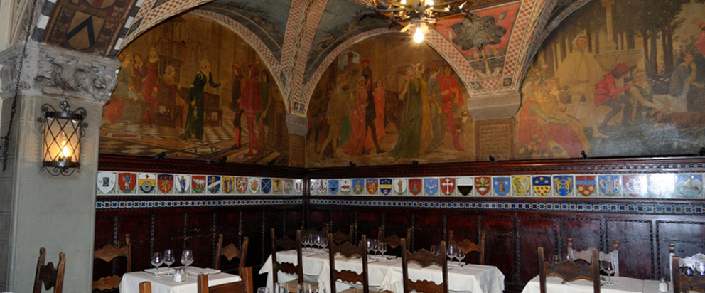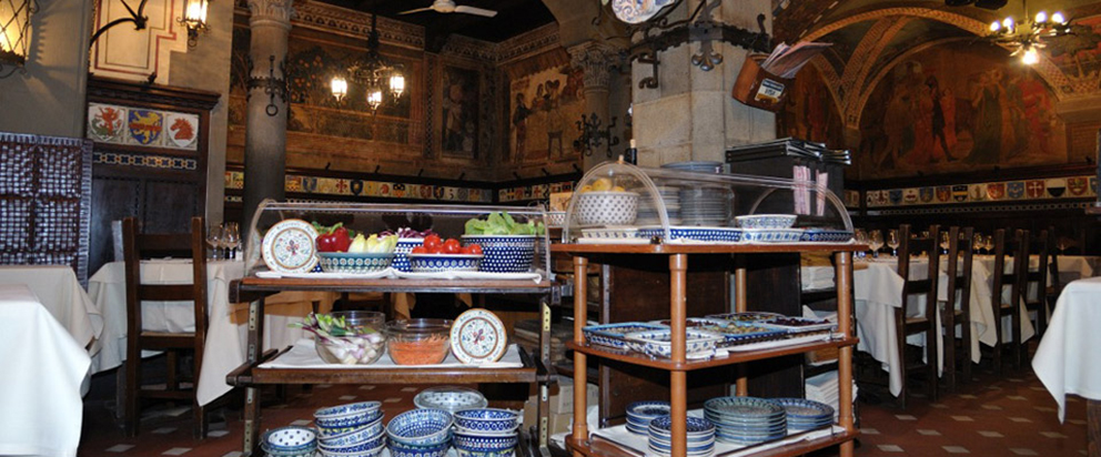 Internamente, o ambiente me lembra uma igreja misturada com um salão de um castelo de filme de capa e espada.