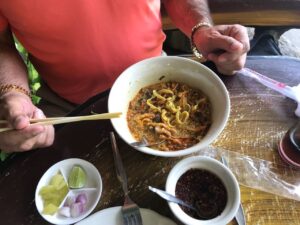 Apesar de próximo de muitas atrações locais, não é um restaurante do tipo “parada turística”. Sem luxo, mas com muita autenticidade oferece uma ótima oportunidade de provar a legítima culinária de Chiang Mai (que é levemente distinta da culinária tailandesa).
