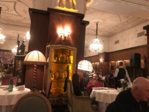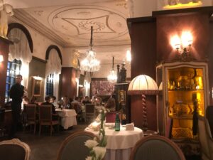 A cozinha é competentíssima o e ambiente é encantador. O restaurante parece saído de um filme – há algo de cenográfico em cada detalhe. Um grupo de designers de interiores trabalhou por quase dois anos na construção do seu salão, restaurado com o luxo da Rússia imperial e decorado com antiguidades, incluindo um trono do Tsar.